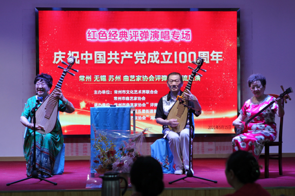 5月15日,初夏时节,万物并秀,为庆祝中国共产党成立100周年,进一步激发基层党组织活力,增强广大党员的光荣感、使命感,新中村党总支联合常州市文联和常州市曲艺家协会,在新中书场开展了红色经典评弹展演活动。常州市文联成员、常州市曲协成员、新中村党员代表、新中村居民代表等共70余人观看演出。