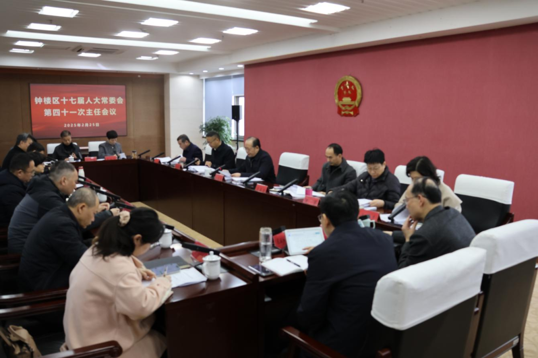 2月25日上午,区十七届人大常委会召开第四十一次主任会议。区人大常委会主任汤建军主持会议,常委会领导吴嘉润、顾征英、张菁、许立新、汤杰出席会议。区人大各专门委员会、常委会各工委室负责人,镇人大主席、人大各街道工委主任列席会议。