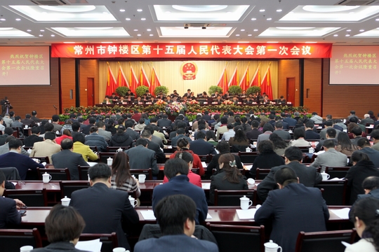 上午九时,徐伟南宣布:常州市钟楼区第十五届人民代表大会第一次会议开幕。会场全体起立,高奏国歌。