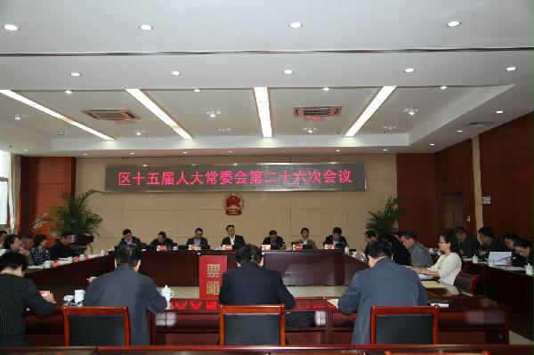 10月29日上午9:00,区十五届人大常委会第二十六次会议在区机关208会议室举行。区人大常委会副主任周朝顺主持了会议。