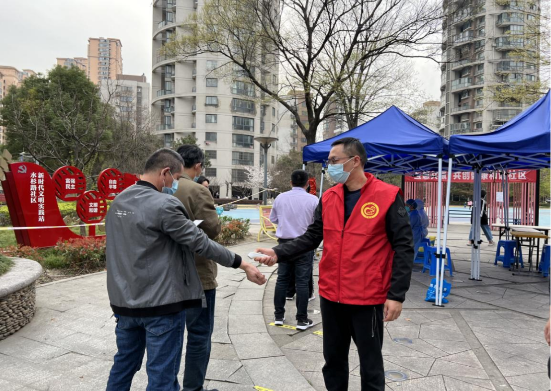 3月16日,区政协委员朱志峰赴社区做防疫志愿者,维持核酸采样点秩序。