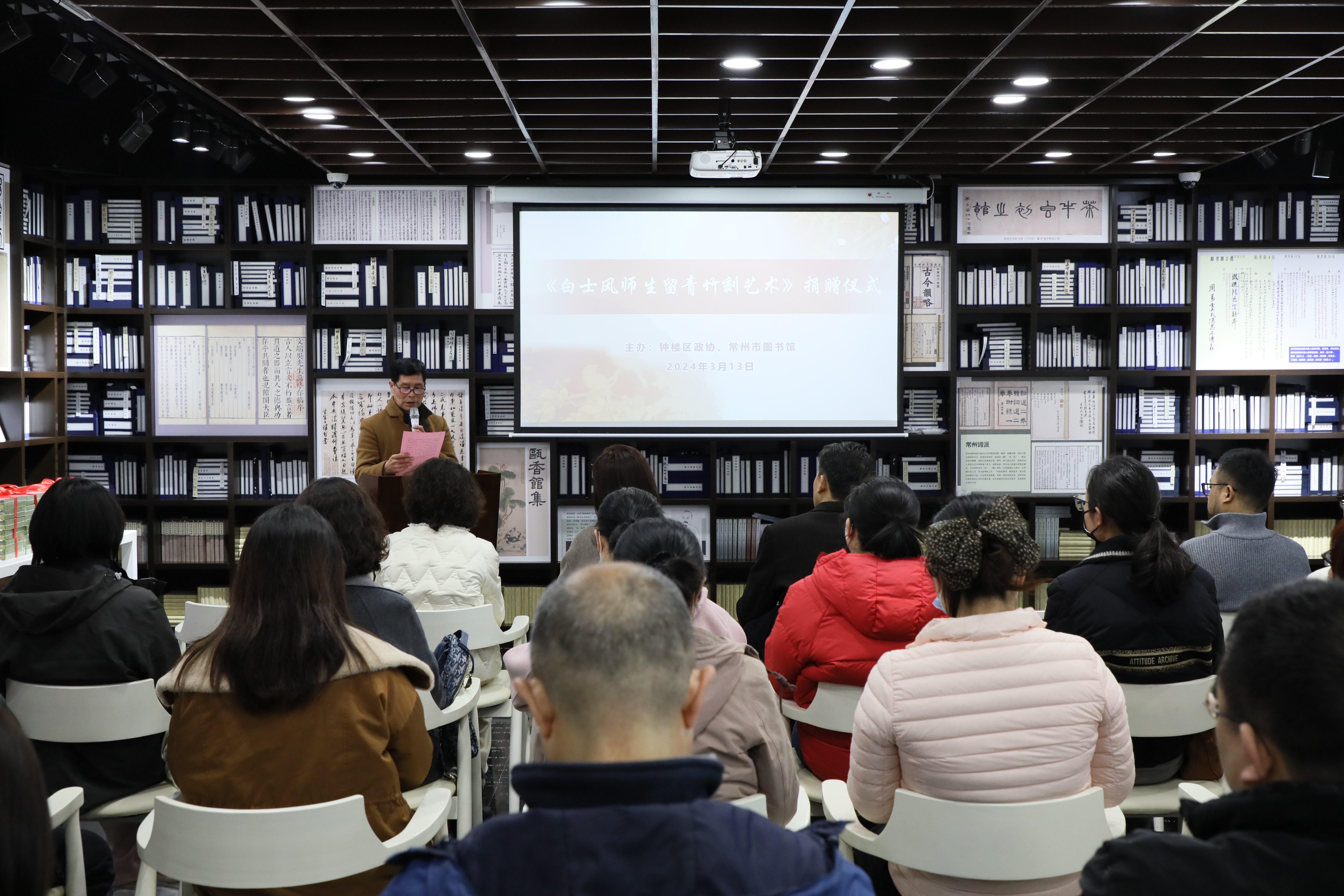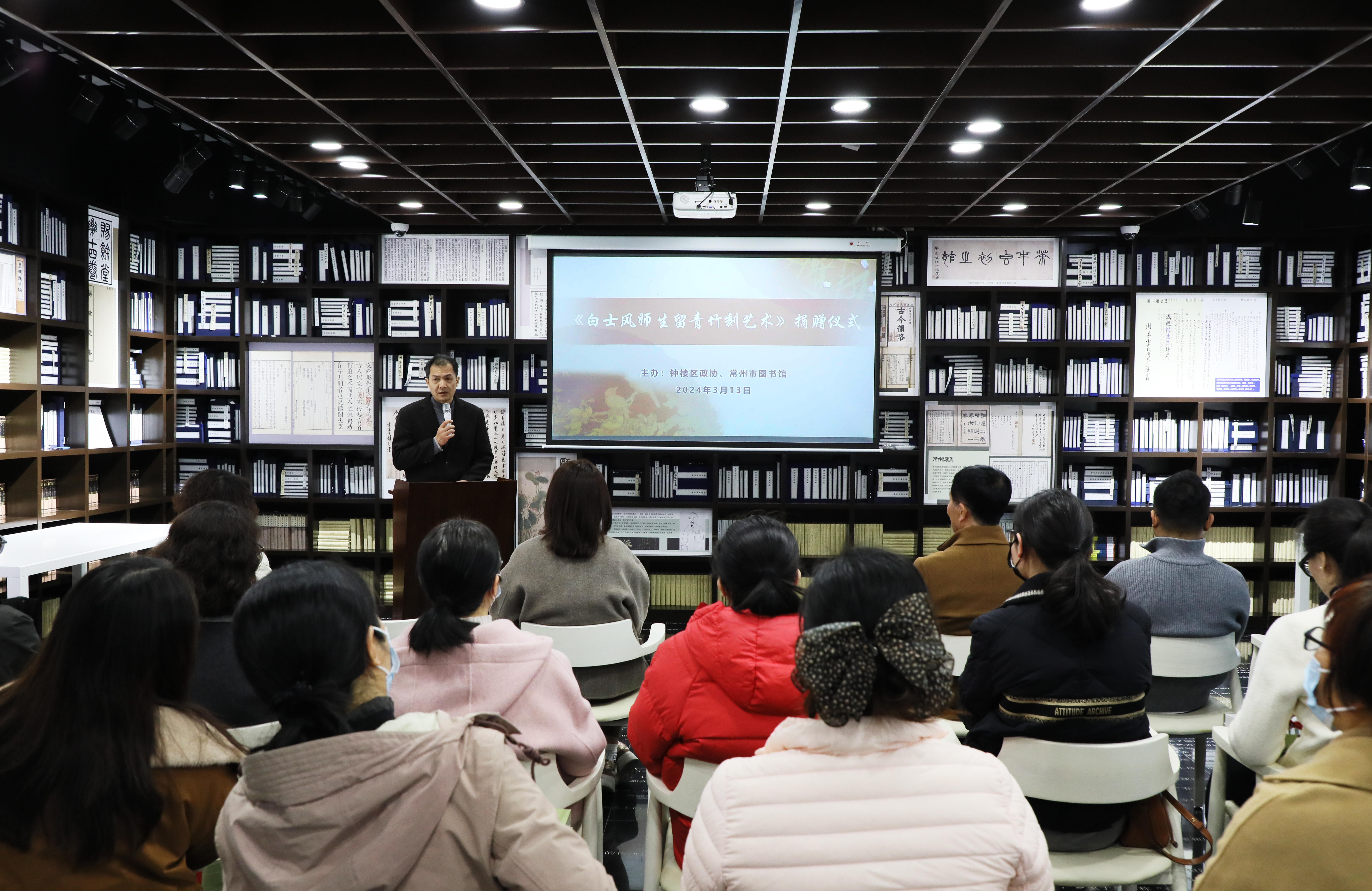 文脉千古,弦歌不辍。3月13日,《白士风师生留青竹刻艺术》捐赠仪式在常州市图书馆举办,钟楼区政协副主席徐旭东,常州市图书馆副馆长钱舒屏,江苏省工艺美术大师、国家级非物质文化遗产国家级传承人白坚仁出席活动。