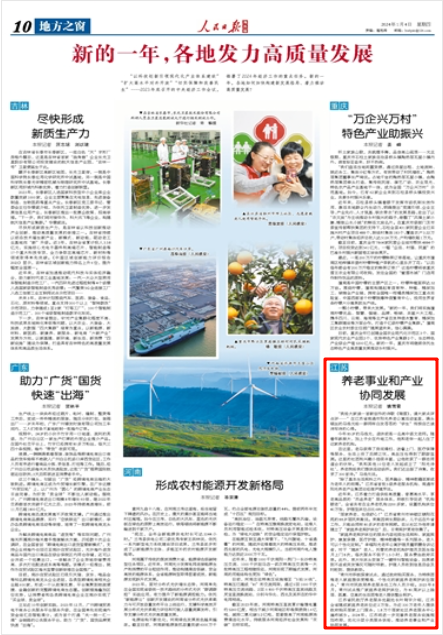 2024年1月4日,《人民日报海外版》10版刊登《江苏:养老事业和产业协同发展》一文,文章一半篇幅聚焦常州钟楼医养融合、居家养老服务工作,点赞常州市积极探索家庭养老照护床位试点,通过政府购买服务,为特殊困难老人家庭提供更精准、个性化的家庭养老照护床位服务。现将全文转载。