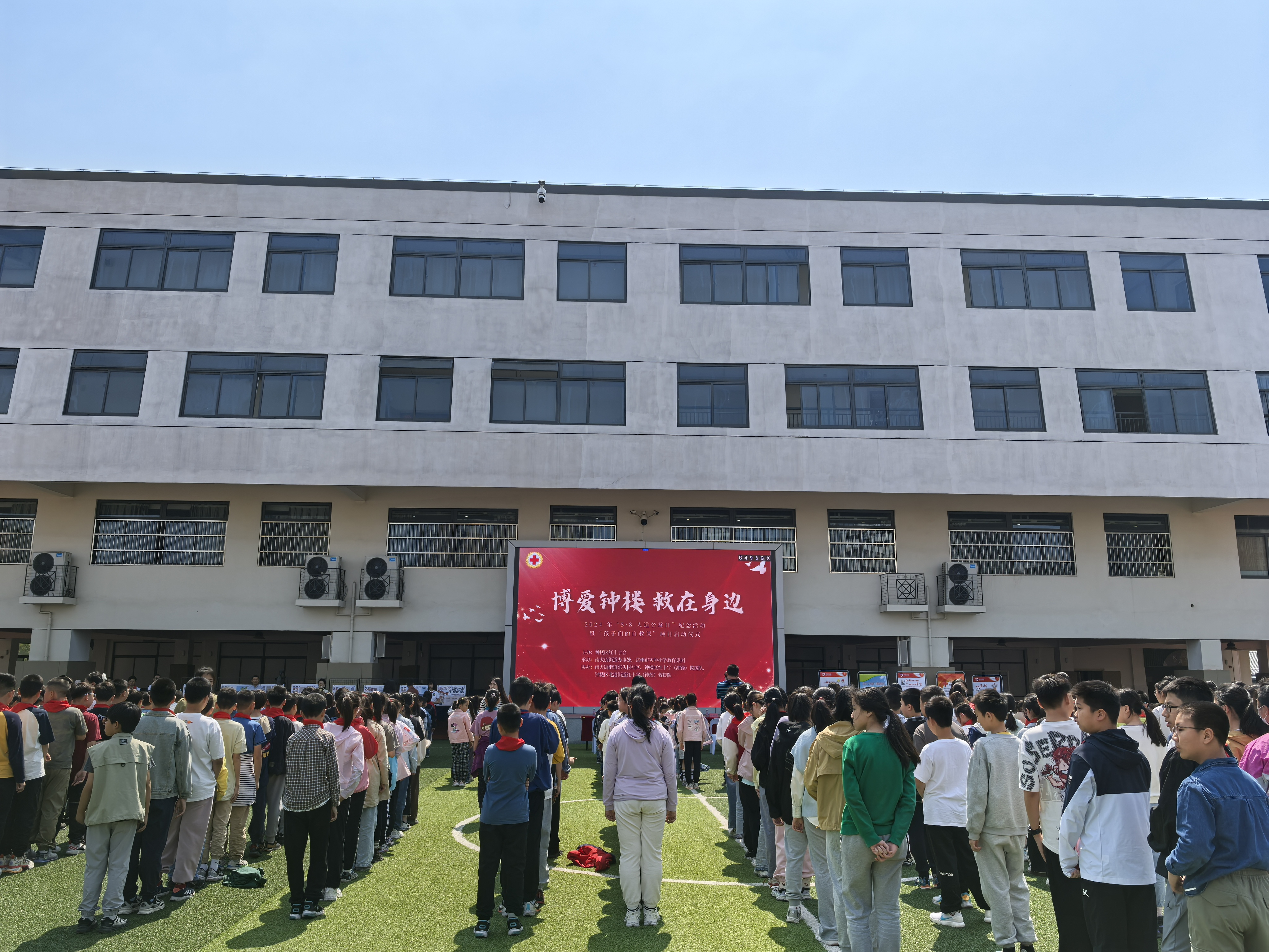 2024年是中国红十字会成立120周年,为大力弘扬“人道、博爱、奉献”的红十字精神,传播红十字文化,5月8日上午,钟楼区红十字会、南大街街道办事处、常州市实验小学教育集团联合举办“博爱钟楼·救在身边——2024年‘5·8人道公益日’纪念活动暨‘孩子们的自救课’项目启动仪式”活动。区红十字会党组书记、常务副会长蔡峰、市红十字会捐献工作部部长吴迪、南大街街道办事处副主任滕波、市实验小学教育集团党支部书记、校长张祖润参加活动。