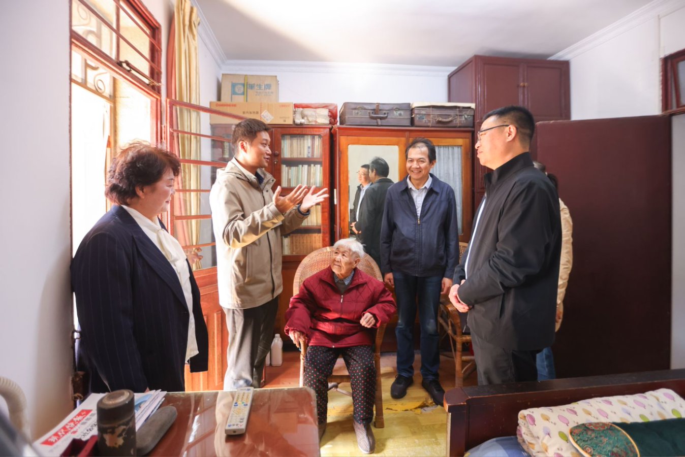 活动当天,同步开展“重阳敬老•政协同行”百岁老人上门慰问行动。区政协党组成员徐旭东与部分政协委员走访辖区百岁老人家庭,为他们送上精心准备的重阳节礼盒、慰问品和诚挚祝福,详细了解老人的生活起居与健康状况,叮嘱家属悉心照料,并协调社区力量加强日常关爱,让高龄老人感受到党和政府的温暖关怀。