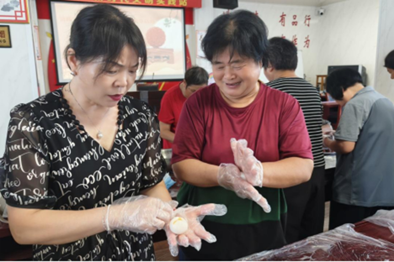 经过一个多小时的精心制作,一个个造型各异、精致可爱的冰皮月饼在村民们手中诞生。看着自己的劳动成果,大家脸上都洋溢着自豪和喜悦的笑容。活动尾声,村民们将亲手制作的月饼进行包装,部分用于现场分享品尝,部分则带回家与亲人共享。大家品尝着香甜的月饼,交流着制作心得,畅谈邻里情谊,活动现场弥漫着浓浓的节日气息和村社温情。(陈婷)