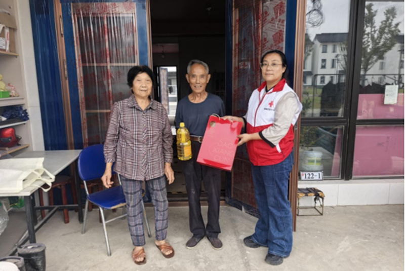 近日,邹区镇红十字会联合邹区镇杏塘村到杏塘家园开展博爱送万家活动,共计向杏塘村20户困难家庭送上月饼、大豆油慰问品。
