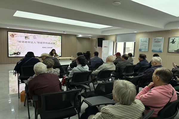 10月20日,荷花池街道机械二村社区开展“常邻老年达人”智能手机挑战赛。几十位头发花白的“老学生”紧盯屏幕,手指翻飞,在趣味比赛中跨越“数字鸿沟”。