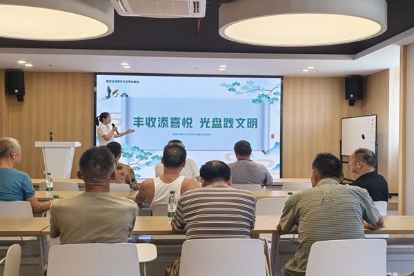 9月19日,在秋分节气即将到来之际,新闸街道唐家社区组织开展“光盘行动”专题宣讲会,推动节粮风尚融入居民日常生活。