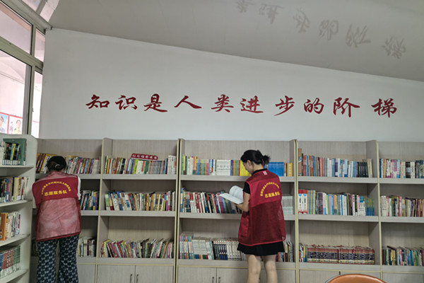 在村工作人员带领下,大学生志愿者对农家书屋进行全面清扫。她们仔细擦拭书架积尘,认真整理散乱图书,彻底清扫地面垃圾,使书屋环境焕然一新,为村民营造出更加整洁舒适的阅读空间。随后,志愿者对书架图书逐本翻阅,重点排查是否存在淫秽色情、暴力恐怖、封建迷信等非法有害出版物,以及盗版盗印等侵权书籍。大学生志愿者积极投身乡村建设,为永丰村农家书屋的“扫黄打非”工作注入蓬勃的青春活力。