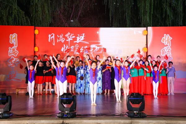 夜幕降临,文艺汇演将气氛推向高潮。演出在《祖国啊我永远热爱你》的歌声中拉开帷幕,空竹表演《最炫民族风》、舞蹈《祖国山河红旗飘扬》《铸就中华魂》、锡剧《盼望党来指方向》等节目接连登场。千寻艺术培训机构的小学员献上活泼可爱的儿童舞蹈,赢得阵阵掌声。最后,全体演员共同演绎《我和我的祖国》,引发全场大合唱。