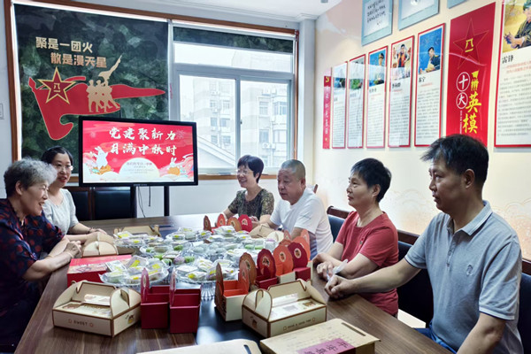 活动现场,从拌粉开始,一步步将面粉揉搓成五彩斑斓的面团,再巧妙地包裹上馅料,撒上熟糕粉后放入模具中定型。不一会儿,一个个精致的冰皮月饼便呈现在大家眼前。一边认真学习,一边动手实践,现场欢声笑语不断。在月饼制作之余,党员志愿者们为制作好的月饼换上了精美的包装,走进辖区的快递和外卖点位,为辖区内的快递员、外卖配送员等新业态劳动者准备了“暖心”的自制月饼。让这些远在异乡工作的小哥们,也能在中秋佳节感受到第二份家乡的温暖。接过月饼的快递员感叹:“这些月饼吃在嘴里,甜在心里,让我们在异乡也感受到了家的温暖。”这份温情也延伸至辖区的独居老人和困难家庭,党员志愿者们将月饼亲手送到家中,并附上亲切的节日问候,陪他们唠家常、解心结。