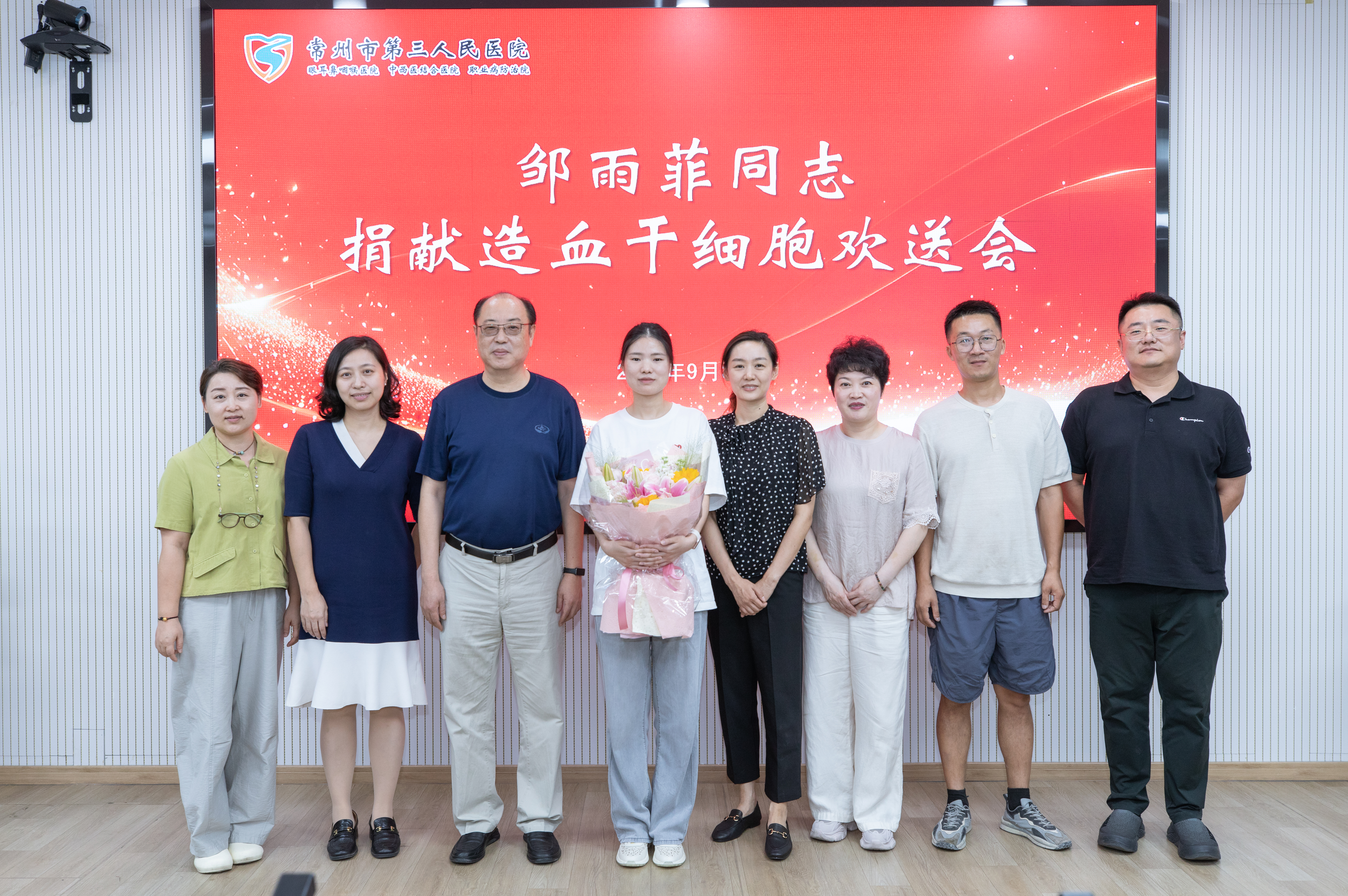 9月3日下午,一场温馨而庄重的造血干细胞捐献欢送会在常州市第三人民医院举行。常州市第三人民医院医生、西林街道东岱村居民邹雨菲女士,将于近日进行造血干细胞的采集和捐献。常州市第三人民医院副院长周民,钟楼区红十字会党组书记、常务副会长蔡峰,常州市红十字会捐献救护部部长吴迪,西林街道红十字会会长、街道办事处副主任欧加庚等参加此次欢送会,为邹雨菲送上鼓励与祝福。