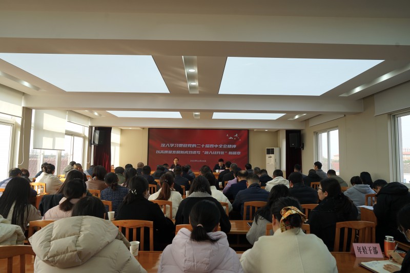 12月25日,西林街道举行学习贯彻党的二十届四中全会精神区委宣讲团宣讲报告会。区委宣讲团成员,区统计局党组书记、局长刘夫先作专题宣讲报告。西林街道党工委副书记、办事处主任陈华峰主持会议。