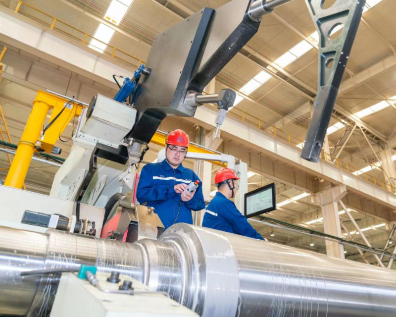 此次,宝钢轧辊肩负起大桥南航道桥全部88支主索鞍滚轴的制造重任,自今年4月底合同敲定,宝钢轧辊迅速切换“攻坚模式”:组建专项技术团队,以“毫米级”精度把控从材料选型、工艺设计到生产落地的全流程,将精细化质量管理贯穿始终。历经5个月昼夜攻坚,首批滚轴率先完成自检与第三方权威检测,用实打实的性能数据印证了“钟楼造”的可靠品质。