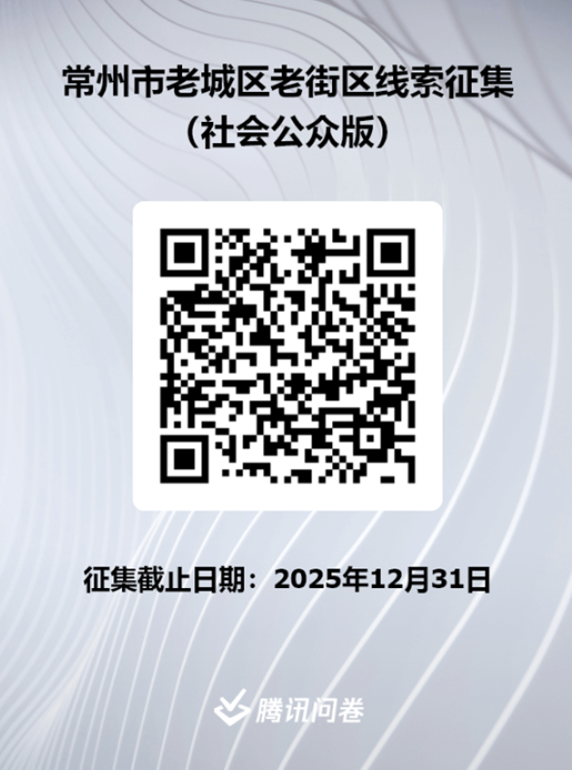 扫描下方“常州市老城区老街区线索征集”二维码,填报相关内容。