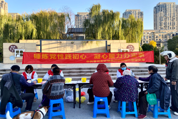 11月26日上午,开发区医疗集团(新闸中心)组织党员志愿者在绿地世纪城初心广场,开展以“锤炼党性践初心凝心聚力办实事”为主题的志愿服务活动,以实际行动为居民健康保驾护航。