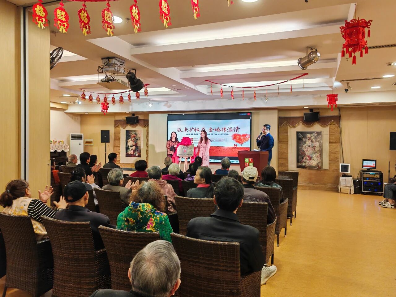 金秋送暖,法护桑榆。为全面落实"法律援助惠民生"专项行动要求,切实保障老年人合法权益,10月22日下午,钟楼区司法局联合常州市公证处、荷花池街道办事处在幸福天年老年公寓举行“敬老护权益・金婚传温情”法律服务暨传承好家风活动,通过法律咨询、普法讲座、案例讲解、一对一帮扶等形式,为老年群体送上“家门口”的法律服务,让法治温暖直抵“夕阳红”。钟楼区司法局副局长张伶及相关单位负责人参加活动。