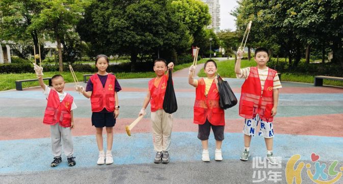 “大家分好组,注意安全!” 随着老师一声招呼,小志愿者们迅速行动。第一组的队员们蹲在绿化带里,一手拿夹子夹起碎纸屑、塑料瓶,一手用小铲子清理嵌在泥土里的烟头,遇到缠在树枝上的塑料袋,还会小心地踮起脚解开;第二组的同学提着水桶、拿着抹布,先往座椅上喷点清洁剂,再反复擦拭,连健身器材的缝隙都用小刷子刷得干干净净,原本灰蒙蒙的设施渐渐露出鲜亮的底色;经过一个多小时的忙碌,健身区的设施锃亮如新,居民们坐上去再也不用担心沾灰;墙角的杂物不见了,取而代之的是摆放整齐的绿植,路过的人都会忍不住多看两眼。