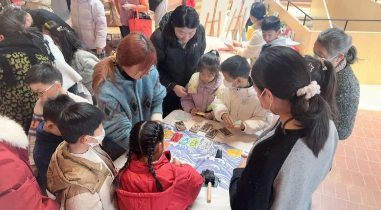 妆造师细说历代妆容变迁,亲子协作制作宋锦发饰与背包,在“寸锦寸金”的质感中,感受运河商贸曾经的繁华;香篆轻烟萦绕,活字排印诗词。一缕香、一句诗,勾勒出运河沿岸自古的人文书卷气息;中医老师带来亲子养生知识,一颗颗中药籽化身为手钏。运河边自古药材往来,如今在指尖延续这份健康寓意;木刻起落,福字跃然纸上。运河的年俗记忆,通过亲子协作的版画,提前传递出温暖的年味;堆花糕团技艺融入亲子面点课堂。运河滋养的稻麦之香,化作一个个可爱造型,传递“糕团寄意”的常州人情味。