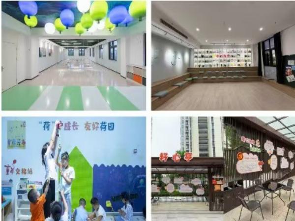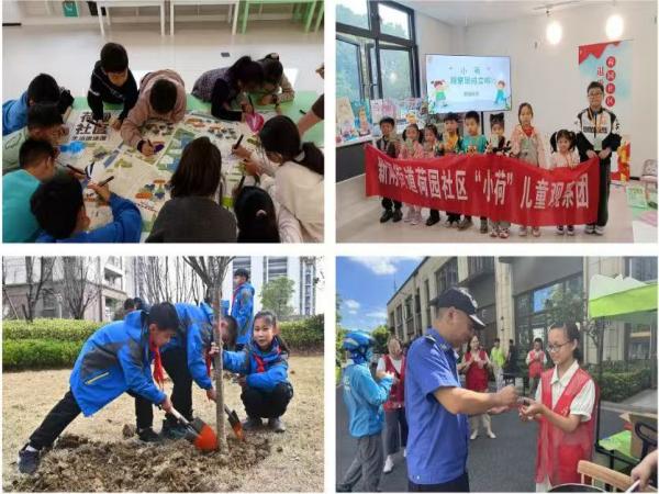 | 钟楼区新闸街道荷园社区成立于2022年11月,辖区面积约0.88平方公里,建筑户数3852户,入住户数2134户,约5464人,其中0-18周岁的青少年占比18%。社区以“儿童优先,全面发展”为核心理念,努力构建全方位促进儿童身心健康成长的友好空间。 1. 坚持党建引领 组织保障坚如磐石 针对社区居民年轻化的特点,荷园社区将儿童工作深度融入党建引领的基层治理体系。在街道党工委指导下,成立由书记牵头的儿童友好社区建设领导小组,通过两委会议细化任务、压实责任。同步建立儿童主任制度,定期走访困境儿童,确保每位孩子的需求及时响应。依托社会组织和志愿者队伍,开展项目化服务,构建多方联动的儿童关爱网络。 2. 强化阵地建设 空间友好 全域覆盖 荷园社区通过室内外空间串联,构建全域覆盖、随时可及的儿童服务阵地网络。 党群服务中心作为核心室内阵地,设有妇女儿童活动中心、儿童书屋、心理解压室等多个功能室,并通过适儿化改造,增设高铁知识科普角、低幼儿玩乐区等,丰富儿童读物2600余册,打造集科普启蒙、游戏互动与亲子教育于一体的特色成长空间。室外服务同样深入儿童生活圈:“幸福驿站”作为党群服务中心儿童服务的延伸点,通过微改造将闲置用房变为亲子乐园;香荷名居“籽心亭”教育点传递红色文化、“荷趣园”游乐区将未成年人保护知识融入游戏体验寓教于乐、随处可见的儿童友好标识进行着无声引导,逐步构建“目之所见皆童趣,心之所及皆美好”的儿童生活新场景。