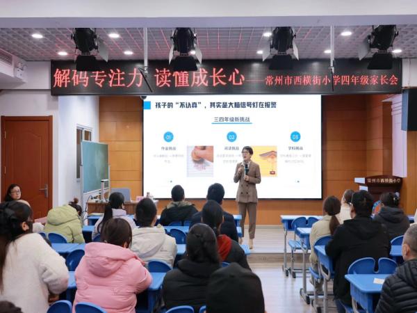 12月5日,“我心向阳 ”青少年健康成长活动第十期讲座在常州市西横街小学举办。本次讲座由常州市钟楼区妇女联合会主办,常州市西横街小学承办,常州市星羽教育发展基金会协办,以“ 从“管孩子”到 “懂孩子” :专注力背后的脑科学密码”为主题,邀请芮彩琴作为主讲嘉宾。