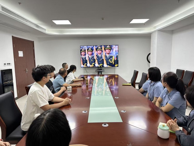 威武雄壮的徒步方队,步伐整齐划一,彰显着纪律的严明和意志的坚定;先进的装备方队,各类新型武器装备琳琅满目,展示着我国军事科技的飞速发展;翱翔天际的空中梯队,如雄鹰展翅,划破长空,尽显大国空军的风采。约70分钟的阅兵,如同一幅气势恢宏的画卷,徐徐展开在大家眼前,让每一位干部职工都深受震撼。从承载着历史记忆、体现传承的抗战老部队,到展现新时代军事布局和战略威慑力的新型作战力量;从飘扬着战斗功勋、凝聚着英雄气概的战旗方队,到代表着现代战争形态演变、彰显科技强军成果的先进装备,每一个细节都让人深刻感受到祖国的日益强大和民族的伟大复兴。