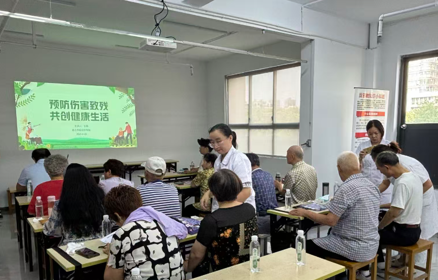 活动现场,永红医院的医护人员及残协工作人员通过多种形式,向居民普及残疾预防知识。他们围绕“预防伤害致残” 主题,重点讲解了日常生活中常见的致残因素,如跌倒、交通事故、工伤等,并针对这些因素详细阐述了相应预防措施。在预防跌倒方面,医护人员特别提醒老年人,要注意家居环境安全,保持地面干燥、通道畅通,在卫生间、楼梯等易跌倒区域安装扶手;同时,建议老年人穿着合适防滑鞋子,日常活动时动作放缓。为使居民更好理解,工作人员还结合实际案例,生动展示了因忽视预防而导致严重后果的情况,让居民深刻认识到残疾预防的重要性。