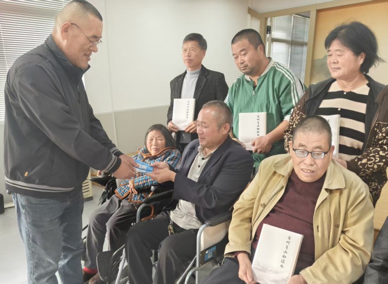 活动最后,朱莉老师以《苏东坡的第二故乡之毗陵我里》为引,生动讲述了苏东坡与常州的深厚历史渊源,重点阐释了其在晚年定居常州期间,虽历经坎坷仍保持豁达心态、心系民生、热爱生活的精神境界。分享结束后,现场向残疾人代表赠送了《常州青山和绿水》一书和电影票,鼓励大家在阅读中提升文化素养、实现自我成长,勇敢走出家门、参与社会。