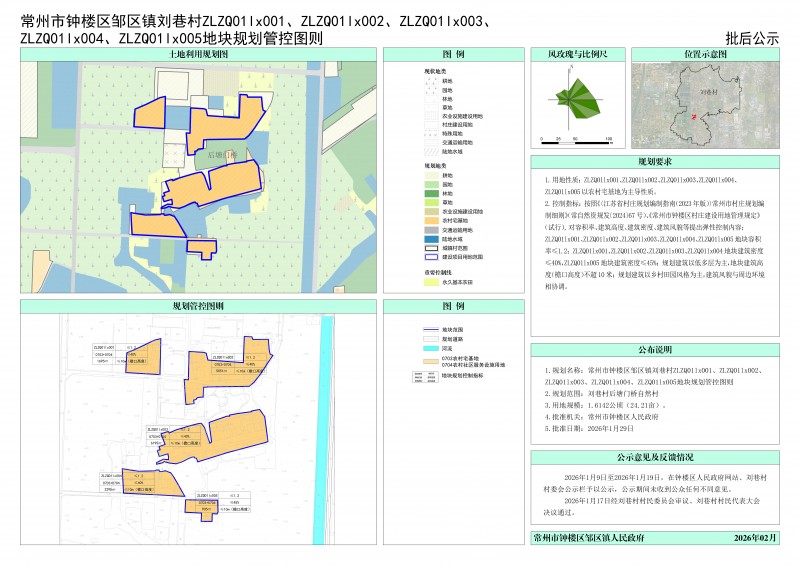 常州市钟楼区邹区镇刘巷村ZLZQ01lx001、ZLZQ01lx002、ZLZQ01lx003、ZLZQ01lx004、ZLZQ01lx005地块规划管控图则公示