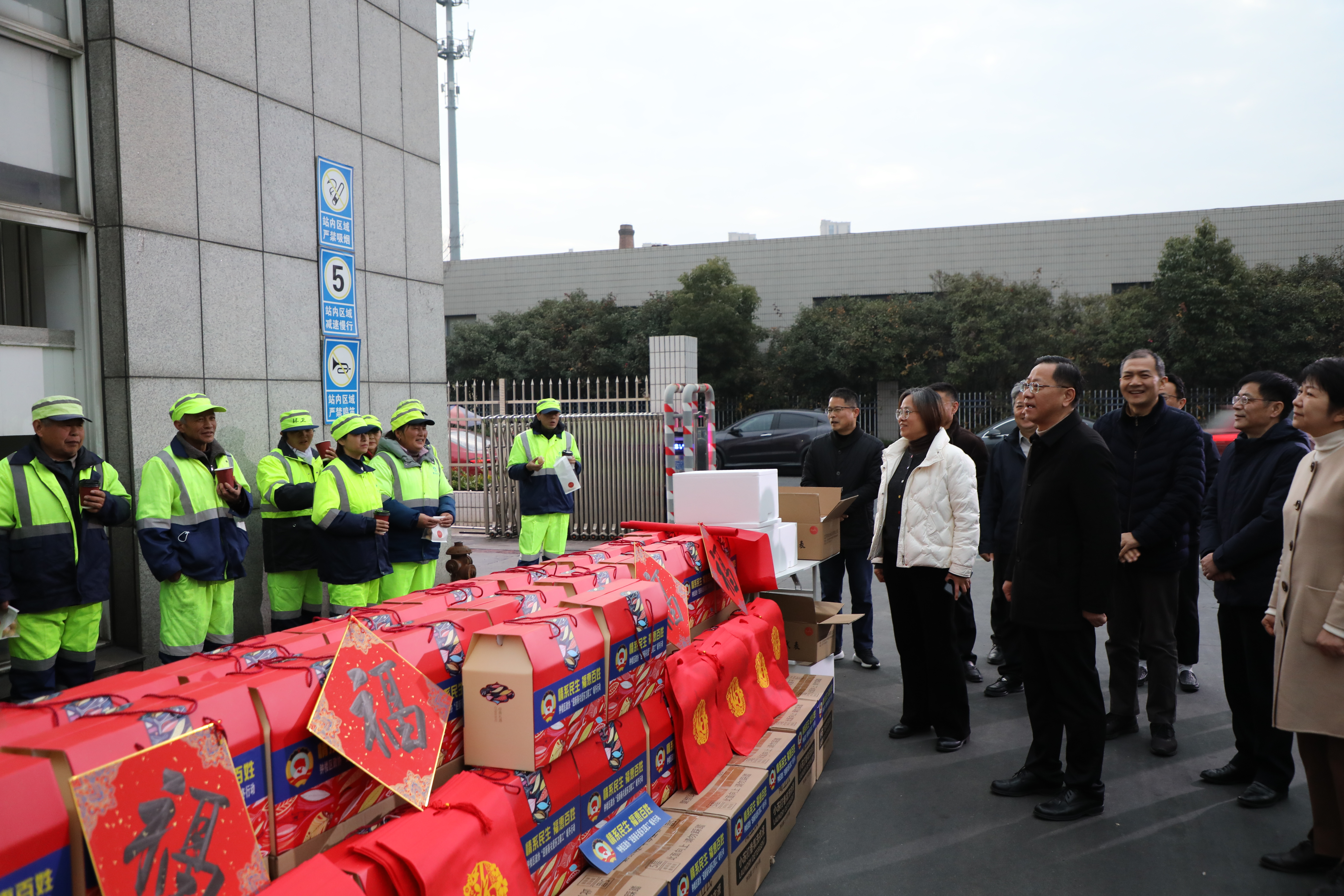 20余名委员组成慰问小分队,亲手将温热的姜茶送到环卫职工手中,细心叮嘱他们注意防寒保暖;红彤彤的福字春联被郑重递上,墨香里承载着对新年的美好期许;礼包内的年货物资一应俱全,凝聚着政协委员对“城市美容师”的深切关怀。接过这份沉甸甸的温暖,环卫职工们脸上洋溢着质朴的笑容,“这么冷的天,能收到这么贴心的礼物,心里暖烘烘的,干活都更有力气了!”