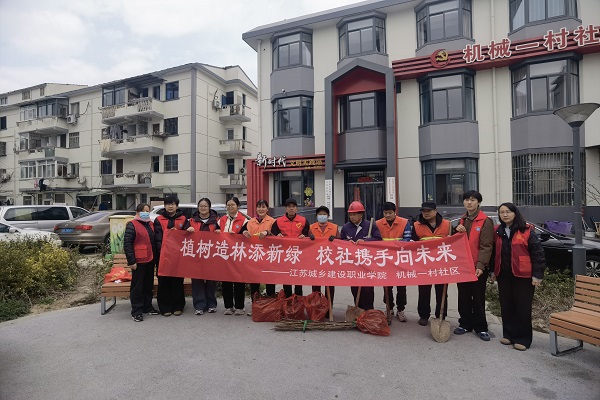 春回大地,万物复苏,在第48个植树节来临之际,为深入践行绿色发展理念,深化校地共建、助力美丽社区建设,3月11日,荷花池街道机械一村社区联合江苏城乡建设职业学院开展“植树造林添新绿、校社携手向未来”植树活动。