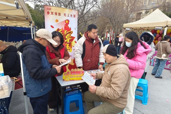 2月2日,绿地便民集市在初心广场上热闹开展。新闸街道绿地社区退役军人服务站积极参与,在集市现场设立政策宣传点,面向居民开展入伍政策宣传。