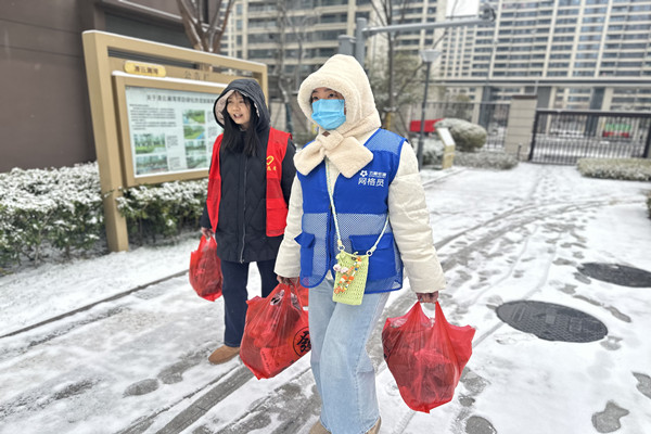 1月20日上午,雨雪如期而至,路面湿滑难行,辖区腿脚不便的独居老人外出采购、出行更是难上加难。社区工作人员与党员志愿者早已提前筹备,在完成防滑保障工作后,立刻切换到“暖心模式”,将提前采购的新鲜时令蔬菜分装成袋,分组踏雪上门,逐一送到独居老人家中。