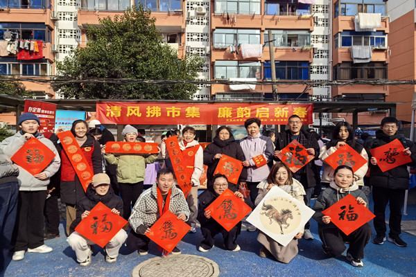 “‘清风送福家业兴,廉洁守正万事顺’,这副对联写得太妙啦!”集市入口处,居民李阿姨接过书法老师现场书写的廉政春联,笑得合不拢嘴。活动现场,书法爱好者们挥毫泼墨,共书写廉政春联、“福”字250余份,免费赠送给居民。居民们纷纷驻足领取这份“廉味年礼”,打算将“清白做人”的美好祝福贴满家门。