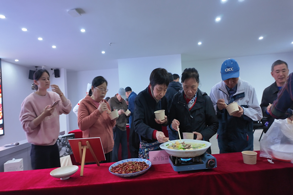 比赛当天,蓝天花园社区活动室香气四溢。来自街区各家餐饮商户的代表陆续端上精心烹制的特色菜——从经典家常菜到创意招牌菜,一道道色香味俱全的佳肴整齐摆放在品鉴区。由党员、美食爱好者和普通居民组成的居民评审团,一边品尝一边认真打分。大家从菜品的口感、创意、摆盘及整体印象等维度进行评判,现场气氛热烈、笑声不断。