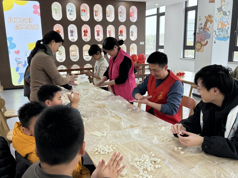 活动伊始,最引人注目的便是元宵制作区。这里进行的是最纯粹的手搓元宵。长桌上,只见一大盆洁白的糯米粉和清水准备就绪。居民们围在桌旁,一位热心的阿姨正在分享经验:“咱们做的是实心元宵,重点在于搓得圆润、均匀。先取适量湿米粉团,在掌心慢慢揉搓,力道要柔,手心要转……”在她的带动下,大家纷纷动手。一双双巧手在米粉间穿梭,没有馅料的羁绊,全神贯注于手掌间的韵律与温度。不一会儿,一颗颗大小匀称、光洁如玉的小圆子便整齐地排列在托盘上,虽无馅料,却更显质朴可爱。年轻人学得认真,孩子们则充满好奇,小手沾满了米粉,搓得不亦乐乎。居民金阿姨捧着自己搓好的元宵,笑着说:“别看没馅儿,这手搓的工夫和心意都在里头了。待会儿煮出来,蘸上糖桂花或者酒酿,那原汁原味的米香才叫地道!一下子就像回到了从前简单又热闹的元宵节!”