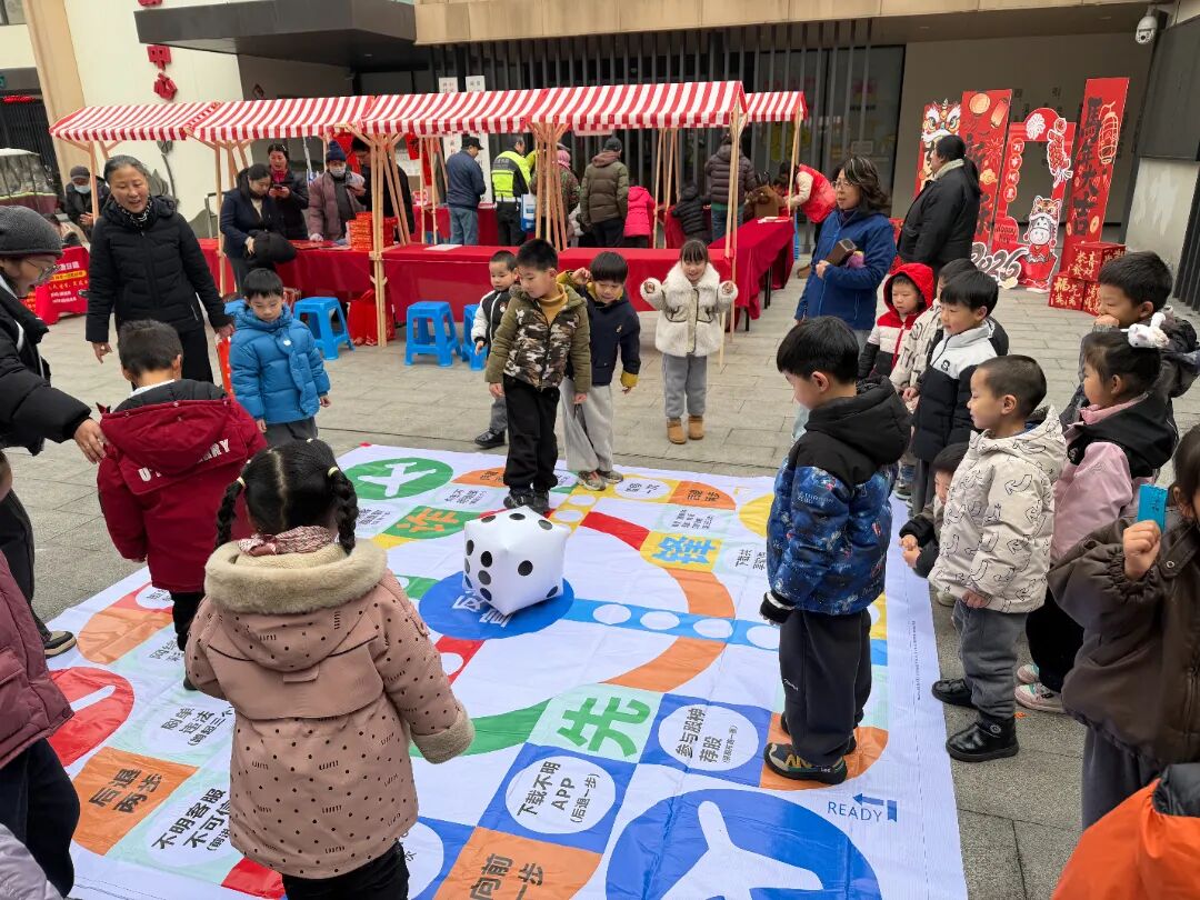 最受居民欢迎的当属“反诈宣传体验区”。社区普法志愿者精心设计互动环节,引导少年儿童参与“反诈骰子”游戏——孩子们掷出骰子后,对应不同诈骗场景(如冒充老师收费、网络游戏充值诈骗等),志愿者随即讲解识别技巧与应对策略。寓教于乐的形式,既点燃了孩子们的参与热情,又在轻松氛围中筑牢青少年反诈“第一道防线”。