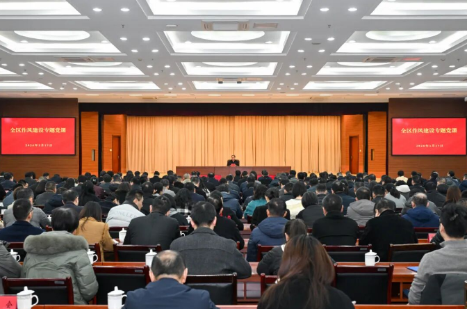 1月17日,区委书记李超鲲以“持续巩固拓展深入贯彻中央八项规定精神学习教育成果,推进作风建设常态化长效化”为主题,为全区党员干部讲授作风建设专题党课。区四套班子领导参加会议。