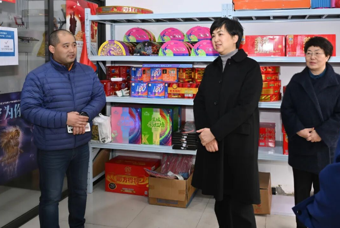 在灿烂烟花爆竹销售网点,刘敏详细询问烟花爆竹的进货渠道、备货数量,重点查看了店铺经营资质、产品储存环境、消防设施配备、安全管理制度落实等情况。她叮嘱经营主体,要严格落实“五个严禁、三个务必”要求,时刻将安全摆在首位;要配合做好安全宣传,普及烟花爆竹燃放安全知识,引导消费者自觉抵制违规产品。