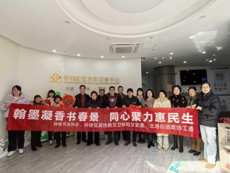 岁序更替,华章日新;新春将至,年味渐浓。为传承中华优秀传统文化,营造喜庆祥和的节日氛围,近日,北港街道政协工委联合钟楼区书法协会、钟楼区政协教文卫体和文史委,组织政协委员、民盟盟员中的书法爱好者走进青枫社区,开展“写春联送福字、走访慰问空巢独居老人”新春主题活动。以翰墨丹青寄寓新春祝福,以暖心行动传递民生温情,让浓浓年味与脉脉温情充盈社区的每一个角落。