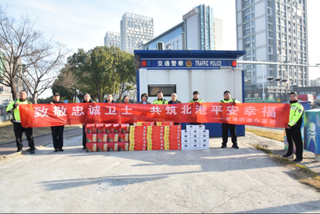 在第6个中国人民警察节即将到来之际,1月9日上午,北港街道党工委书记巢丽娟带队,党工委副书记、政协工委主任范赟,办事处副主任杨善忠、政法委员安东一行,专程前往交警执勤点和北港派出所,看望慰问奋战在一线的公安民警,向他们致以节日的诚挚问候与衷心感谢。