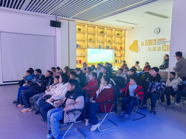 为加强青少年法治教育,提升未成年人的法律意识和自我保护能力,2月12日下午,北港街道月季路社区妇联联合钟楼区人民检察院共同为辖区青少年精心组织了一场别开生面的法治生活教育实践活动。活动寓教于乐、知行合一,让法治的种子在孩子们心中悄然生根发芽。 活动伊始,青少年们走进钟楼区检察院办案中心,开启了一场“沉浸式”的司法体验。在工作人员的带领下,大家依次参观了办案大厅、审讯室、心理咨询室等办公场所,近距离了解检察机关的日常工作流程。庄严肃穆的环境、规范严谨的程序,让孩子们真切感受到法律的威严与公正,也对“司法”二字有了更加具象的认知。 随后,大家来到“繁星未检”法治教育厅,在图文并茂的展陈和互动式讲解中,深入了解未成年人检察工作的职责与意义。展厅内生动的案例、趣味的展项激发了孩子们浓厚的学习兴趣。他们认真聆听、积极提问,还不时记录所思所感。一场别具一格的“法治随堂考”穿插其中,将知识融入游戏,让法律学习变得轻松而高效。 在集中观看青少年普法教育视频环节,一个个贴近生活的典型案例,通过生动的影像和通俗易懂的解读,向孩子们传递了遵纪守法的重要性。视频内容涵盖校园欺凌、网络安全、自我防护等多个方面,既有警示意义,又具实用价值,引发了在场青少年的深刻共鸣。