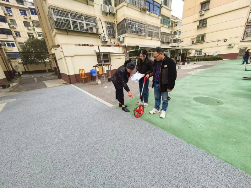 近日,钟楼区审计局在某街道散居楼改造施工项目审计中,结合竣工图纸、工程量计算书等资料,深入实地勘察老旧小区的基础设施工程建设、污水管网改造情况,了解改造项目对居民生活质量的提升效果,同时对发现的问题提出审计建议,充分发挥投资审计监督的作用。图为审计人员实地查看塑胶尺寸。