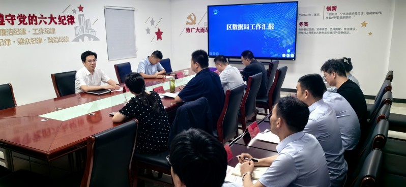 7月5日下午,区委常委、副区长王旭锋专题调研区数据局工作情况,区数据局全体领导及科室负责人参加调研。