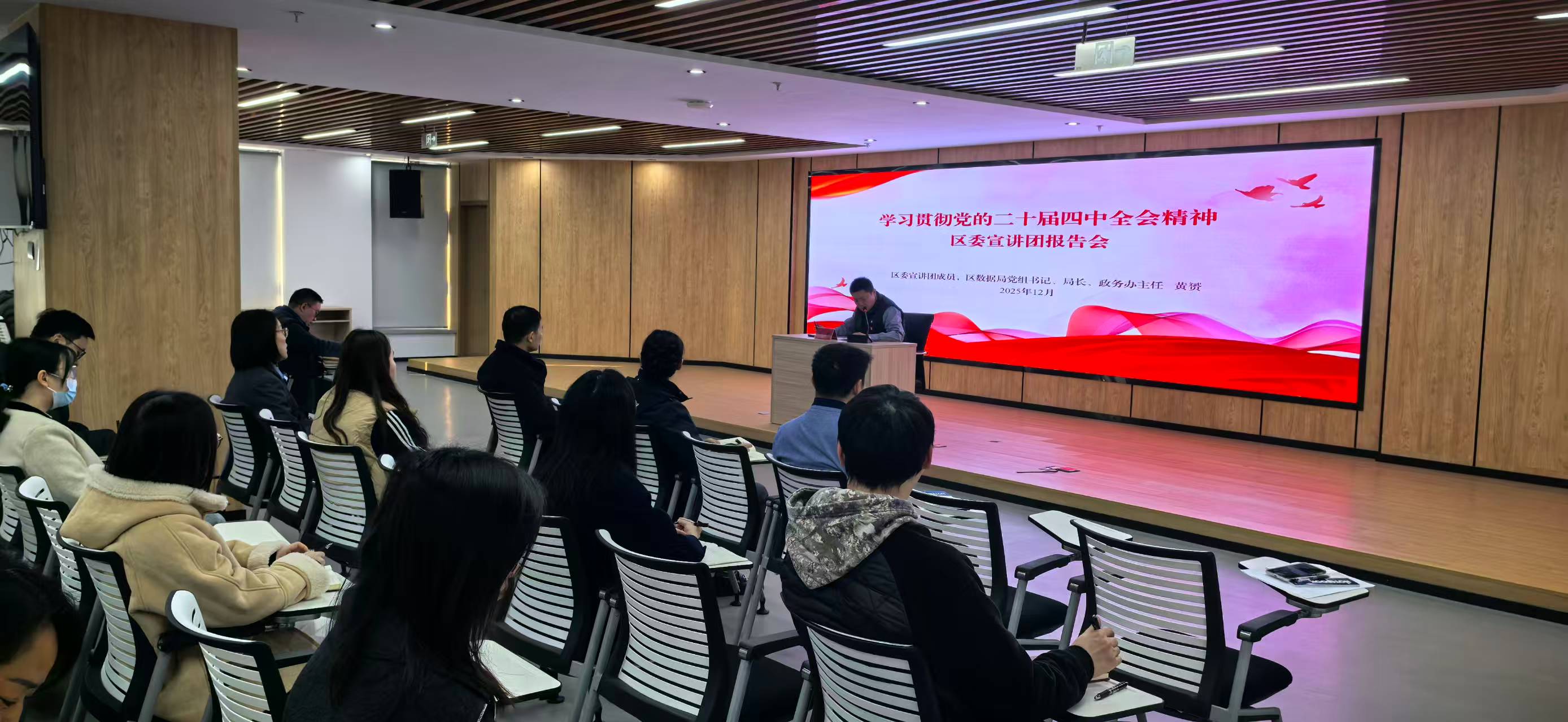根据区委统一部署,12月1日,钟楼区数据系统举行学习贯彻党的二十届四中全会精神区委宣讲团报告会。区委宣讲团成员,区数据局党组书记、局长、政务办主任黄赟作宣讲报告。