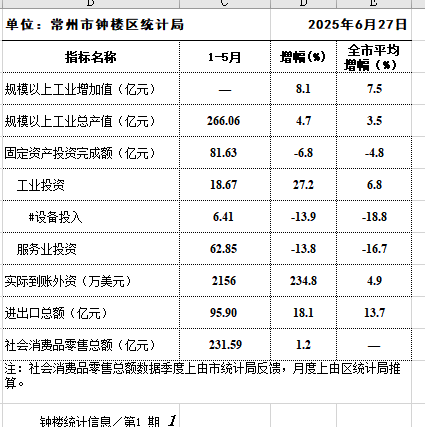 钟楼区2025年1-5月份主要指标完成情况(图表)