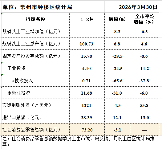 钟楼区2026年1-2月份主要指标完成情况(图表)
